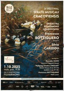 Concerto “FANTASIA” – Marina Pellegrino, pianoforte 28.09.2025, ore 18:00 Sala da concerto della Scuola Statale di Musica “W. Żeleński” di Cracovia, ul. Basztowa 9 Recital della pianista Marina Pellegrino. In programma, tra gli altri, brani di Claude Debussy (Suite Bergamasque con il celebre Clair de Lune), Nino Rota (Pezzi difficili per bambini e Fantasia in […]